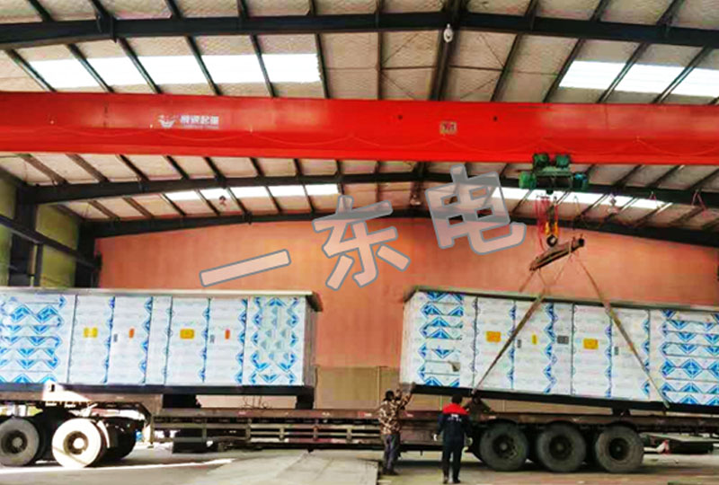 制作好的箱變通過吊繩正在裝載箱變運往客戶途中